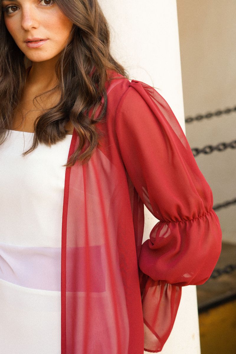 La Bata Liñán Roja, confeccionada en gasa natural, con mangas de diferentes volúmenes hace el encanto de la pieza. Tiene un diseño para ir suelta sin abrochar. Se puede combinar con cualquier camisón. Es perfecta cualquier día ya que su diseño esta pensado para que sea una pieza atemporal. Combínala con el camisón montaño, perea y jurado.