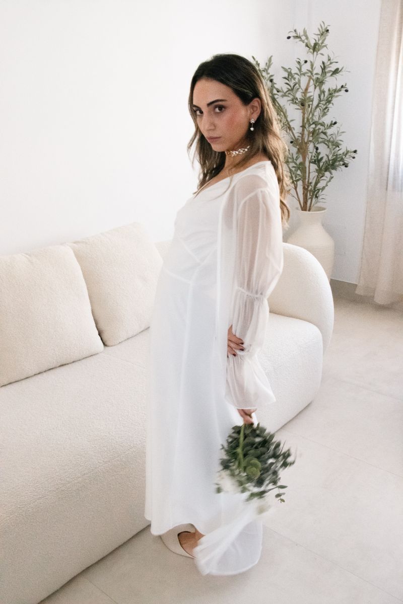 Elaborada en gasa natural, esta bata destaca por sus mangas de volúmenes variados, aportando un encanto único a la prenda. Diseñada para llevarse suelta, sin abrochar, ofrece una gran versatilidad. Su estilo atemporal la hace perfecta para cualquier ocasión y se puede combinar con cualquier camisón. Ideal para conjuntar con los camisones Montaño, Perea y Jurado.